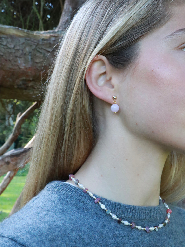 Rosa Jade krystal øreringene er skabt med det formål at hjælpe dig med at finde sindsro, kærlighed, indre balance og tilgivelse. Denne krystal siges at åbne dit hjerte og styrke dine forbindelser med andre.