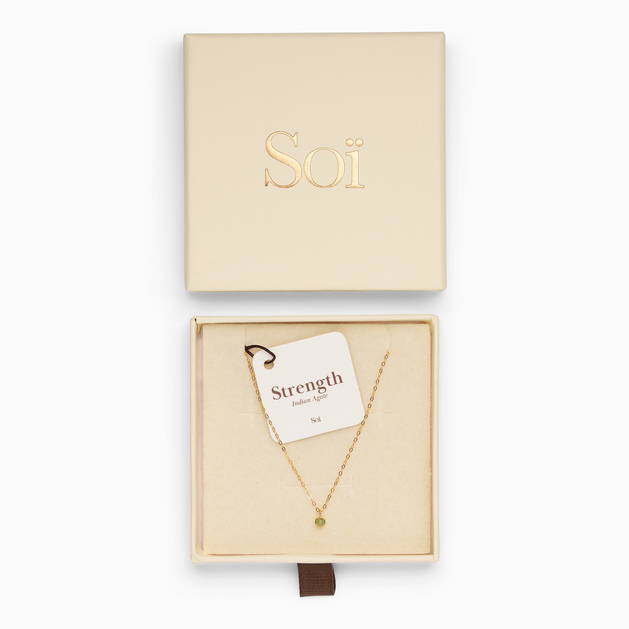 The Aya Indian Agate Necklace in Gold is designed to help you with protection, strength, and harmony. This crystal is said to enhance inner harmony and relationships based on empathy and forgiveness.