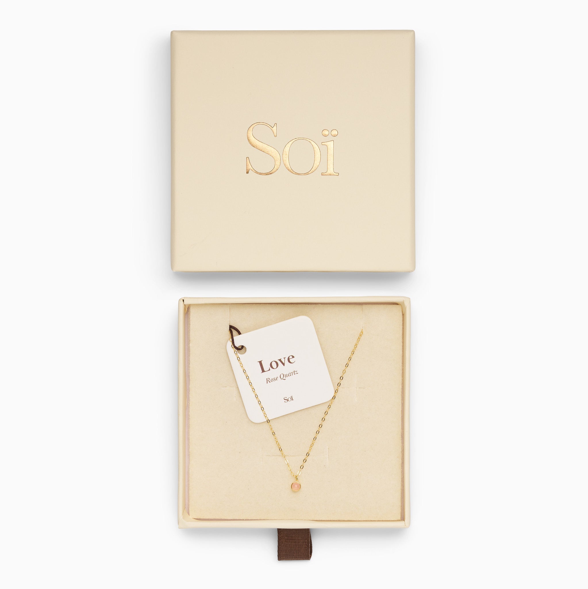 The Aya Rose Quartz Necklace in Gold is designed to help you with more love, stability, and gratitude. The crystal can help promote a positive self-perception and increase self-love.