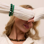 The Chunky Green Jade Stretch Bracelet is designed to help you find balance, increase your luck, and enhance your well-being.