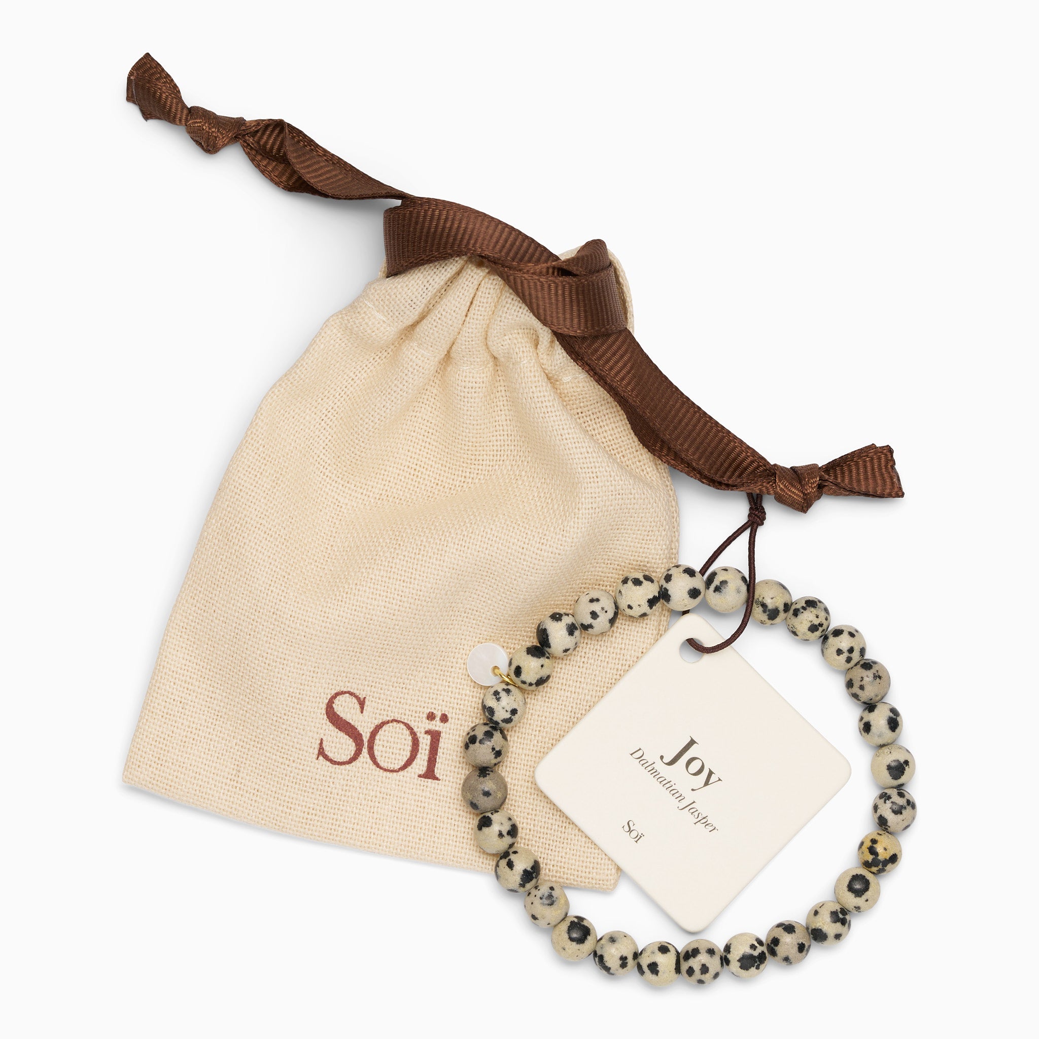 The Essential Dalmatian Jasper Stretch Bracelet is designed to bring joy, lightness and playful energy into your everyday life. Dalmatian Jasper is associated with positivity and is believed to enhance your ability to see life in a positive light.