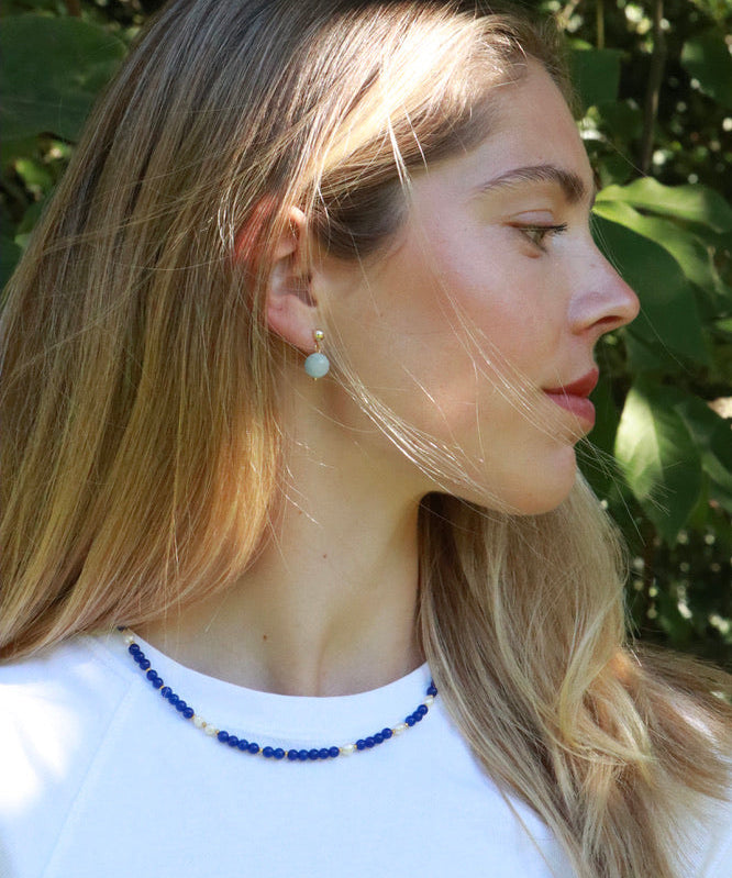 Ellie Freshwater Pearl Gold Necklace in Lapis Lazuli