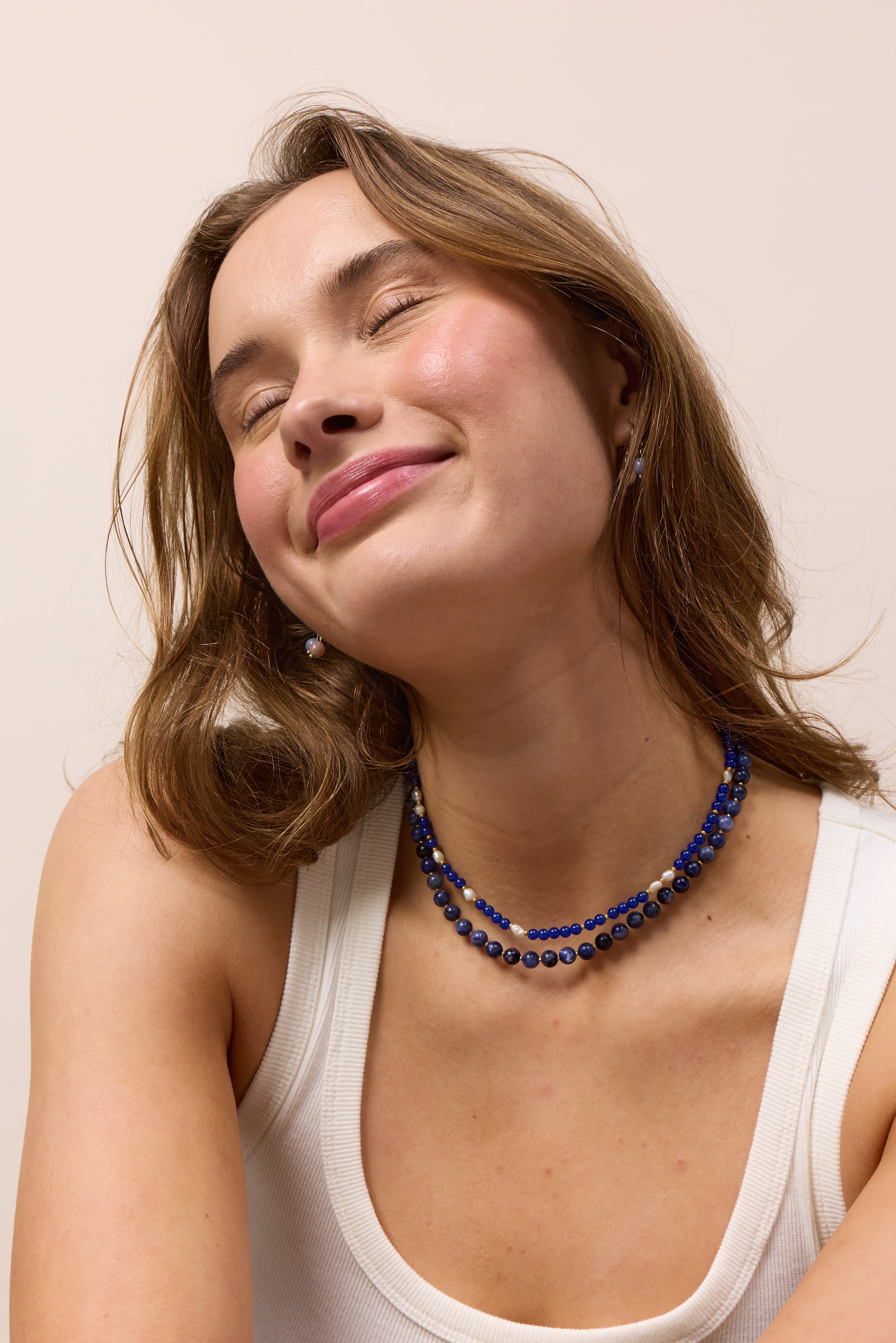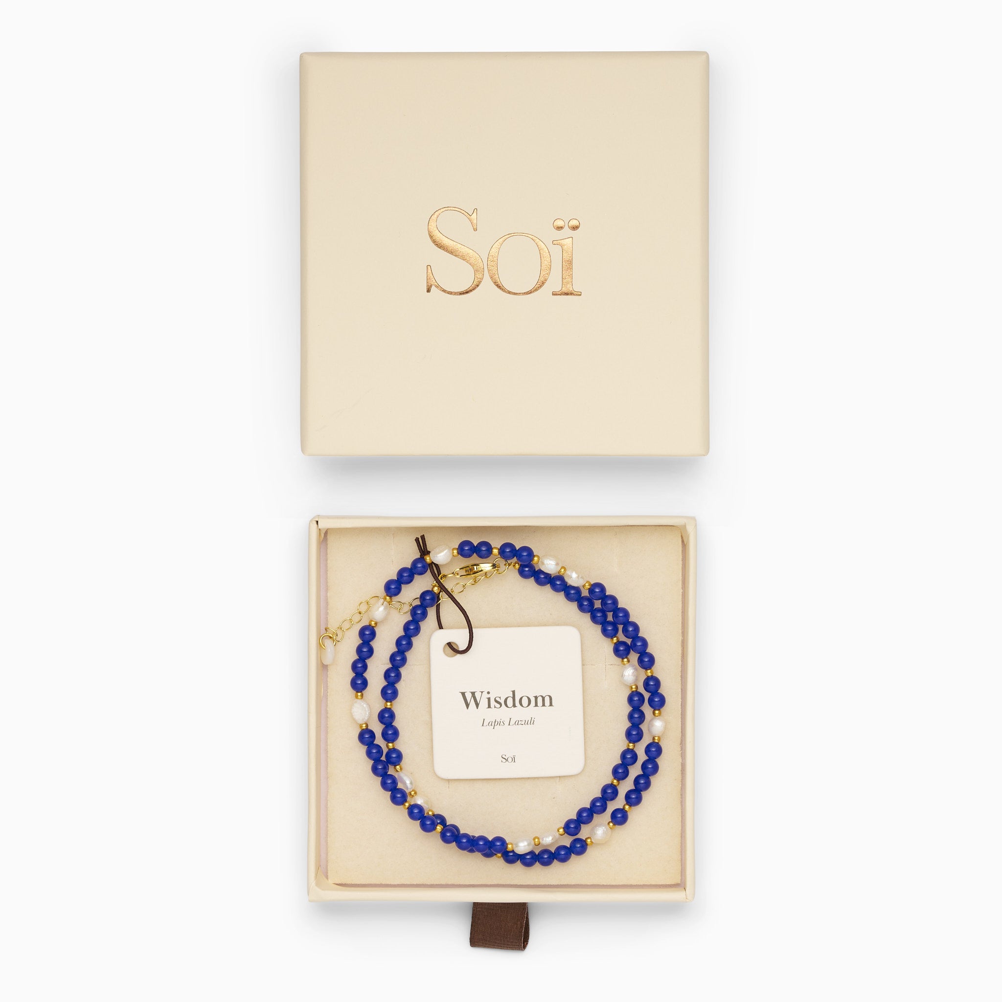The Ellie Lapis Lazuli Pearl Necklace is designed to support you in achieving wisdom, clarity and self-awareness. This deep blue crystal is said to strengthen your intuition and help you communicate honestly and authentically from the heart.