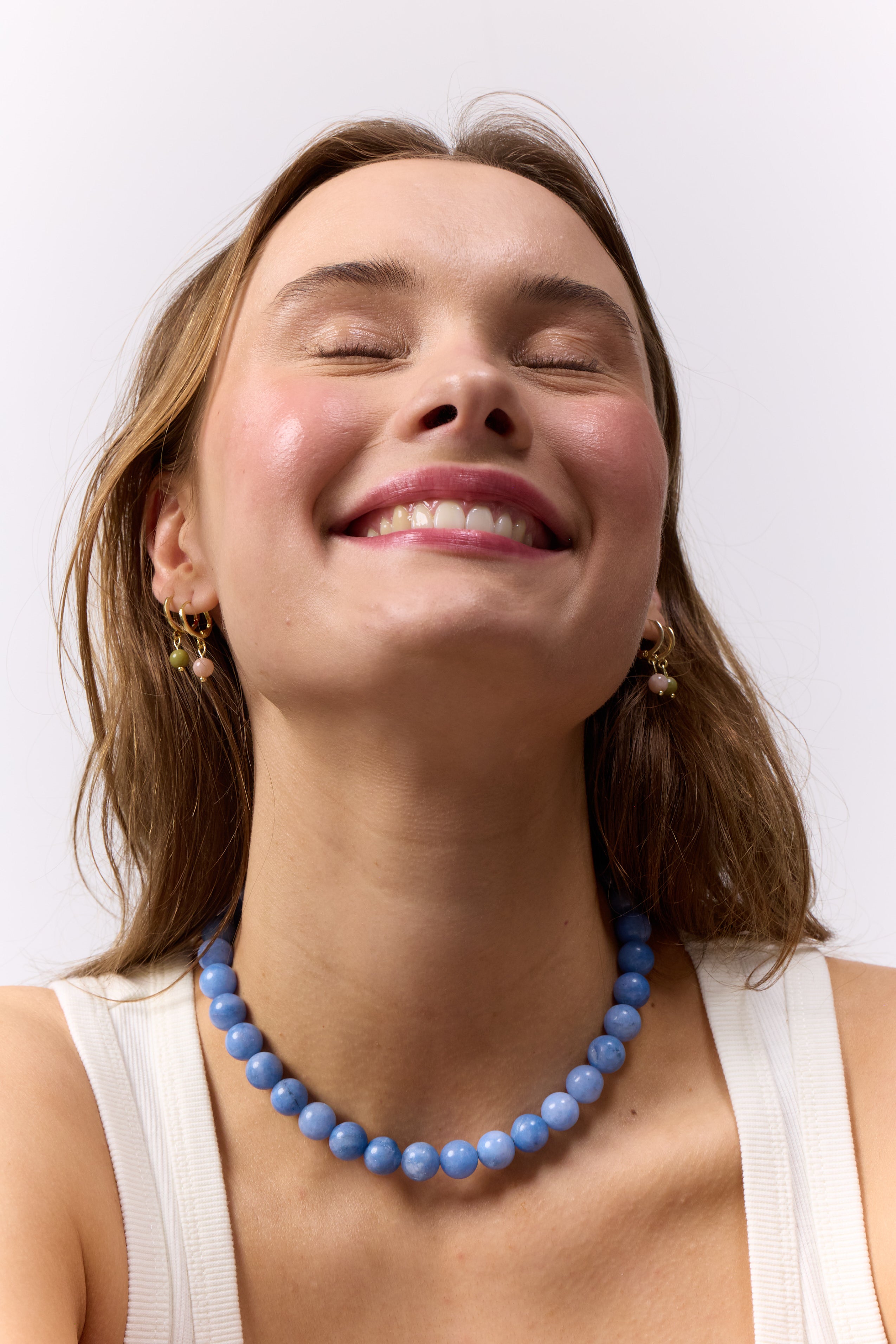 The blue tones of aquamarine represent clarity and inner peace. Crafted with care and finesse, the necklace is more than a piece of jewelry; it is a symbol of balance and positivity.