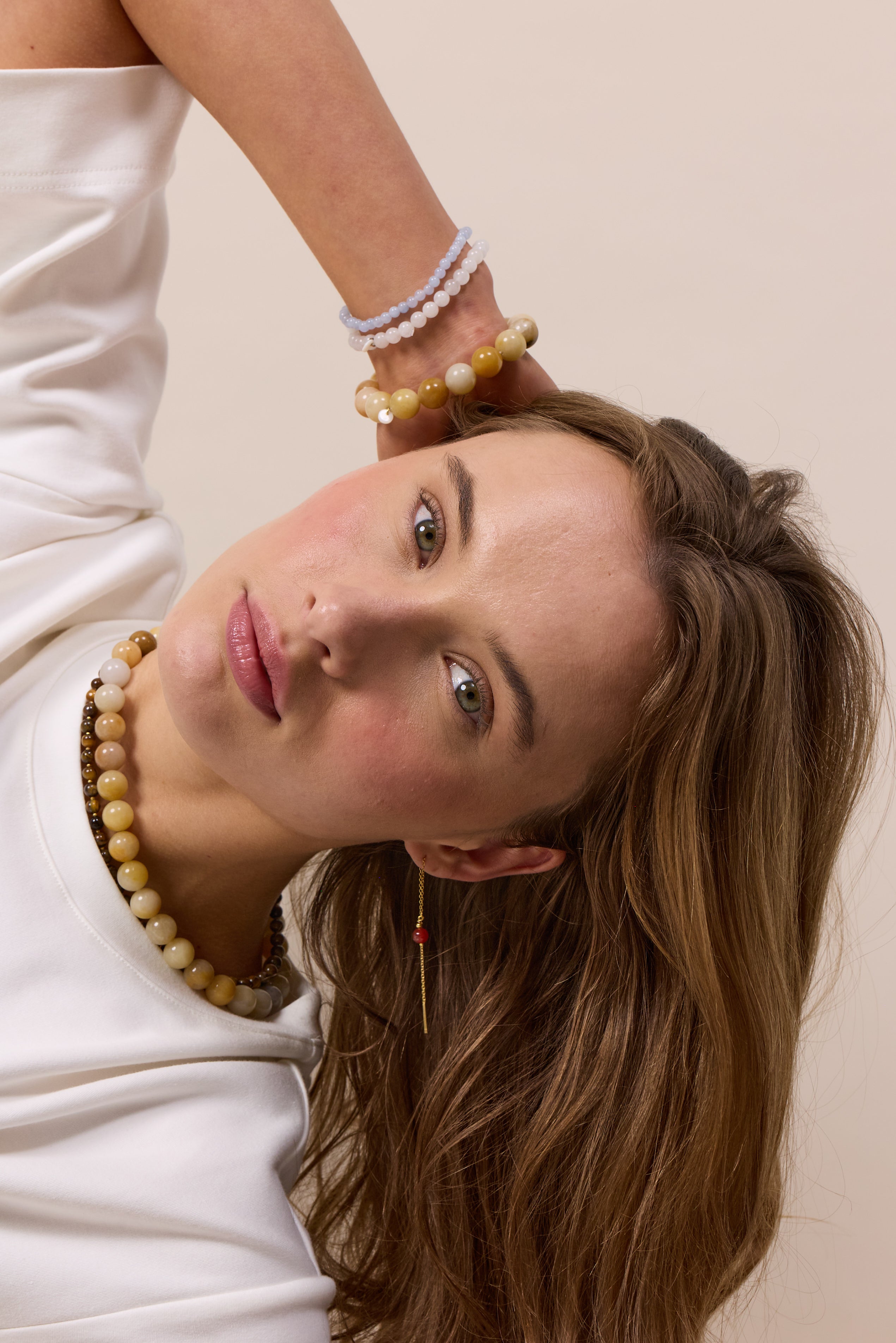 The Faro Orange Aventurine Necklace is designed to boost your creativity, joy, and luck. Orange Aventurine is said to attract good fortune, strengthen self-confidence, and motivate you to achieve your goals.