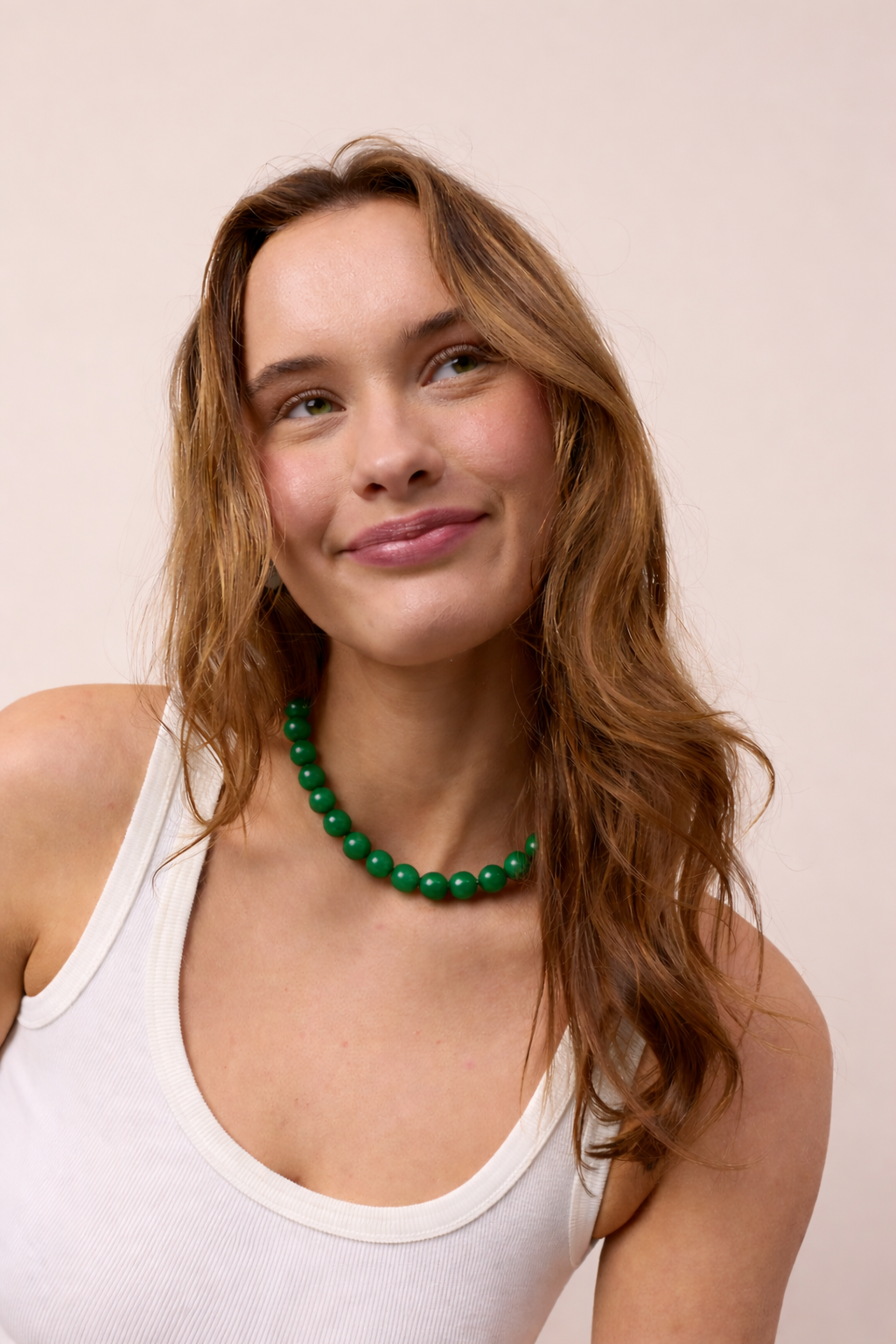 The Faro Green Jade Necklace is designed to help you find balance, increase your luck and well-being.