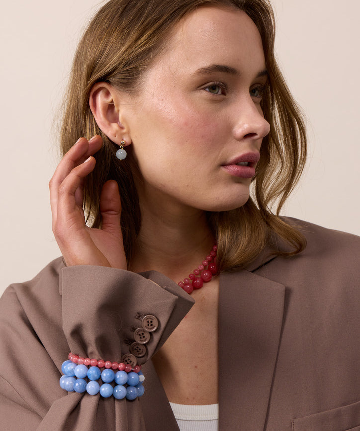 Aquamarine crystal jewelry is created with the purpose of helping you find more courage, be protective and find harmony. Aquamarine is believed to have calming properties that can help relieve stress and anxiety. The blue tones from aquamarine stand for clarity and inner calm.