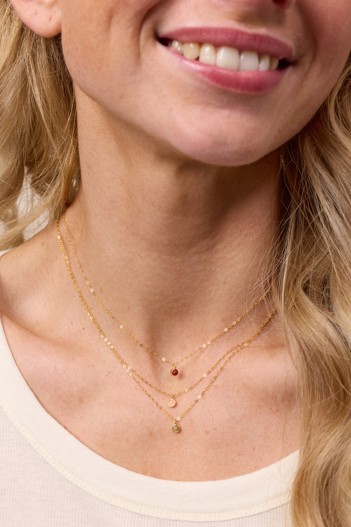 The Aya Red Agate Necklace in Gold is designed to enhance your passion, courage, and energy.