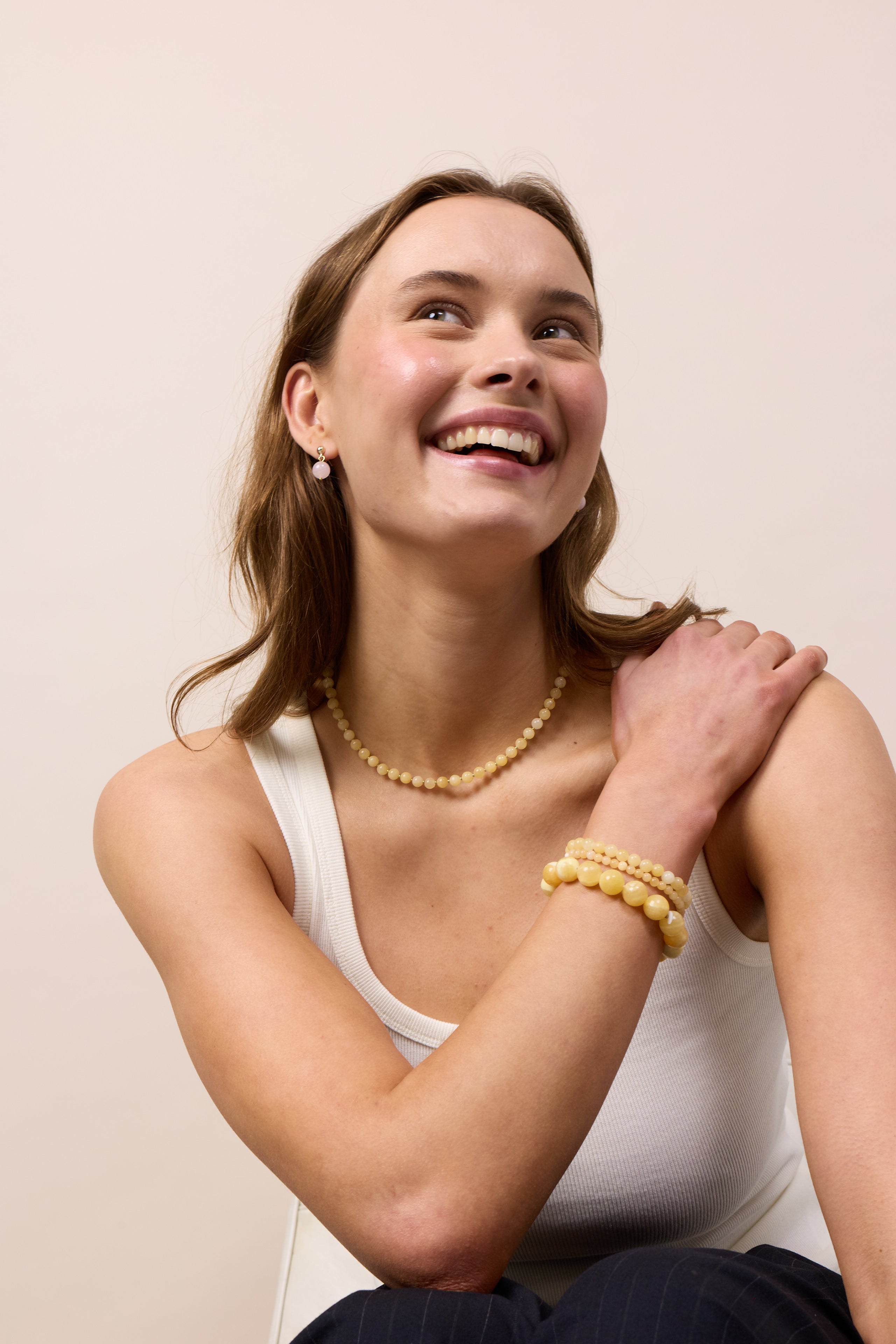 The Hailey Yellow Jade Necklace is created to help you find more joy, well-being, and peace. Yellow jade is said to attract happiness, prosperity, increased self-confidence and inner balance.