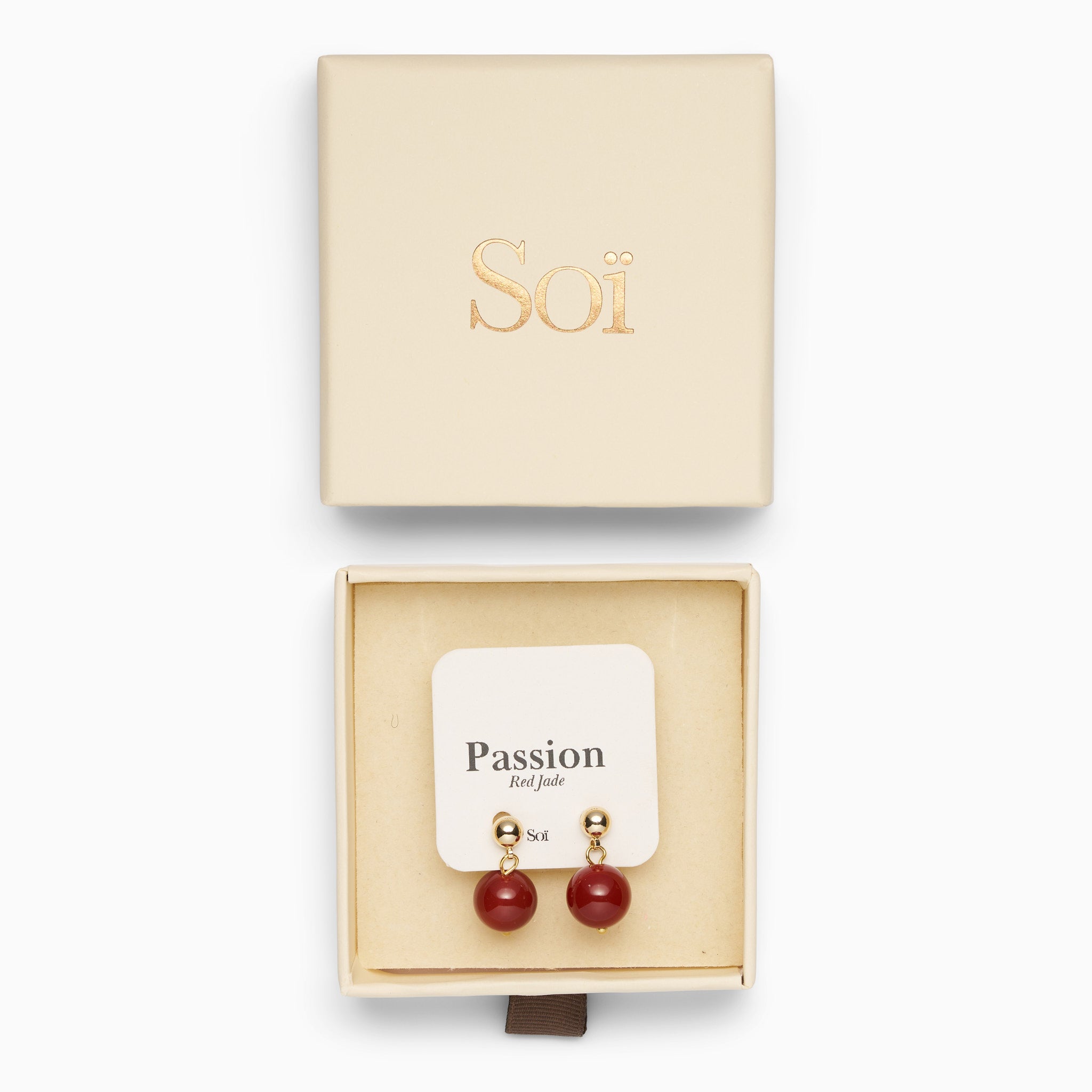 The intense red jade symbolizes strength and vitality. Crafted with care and precision, the earrings are more than just a piece of jewelry; they are an expression of natural beauty and positive power.